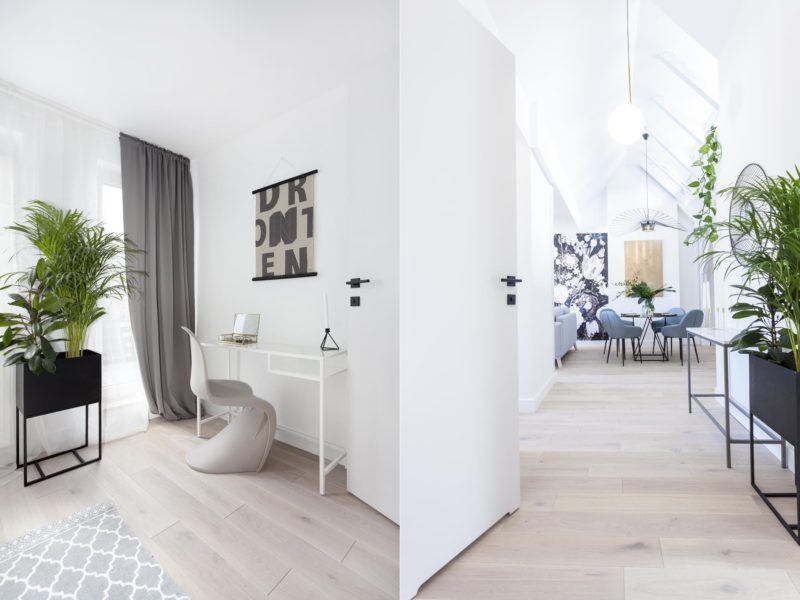 W projekcie dominuje biel, czasem w towarzystwie czerni, drewna albo marmuru. Architektki ze studioLOKO postawiły na ponadczasowość. To mieszkanie nie straci na świeżości, nie ważne kto w nim zamieszka i w jakim celu. Idealnie nadaje się na wynajem, może pełnić też charakter mieszkania na wynajem dla zagranicznych gości oraz może być idealnym miejscem dla rodziny.
